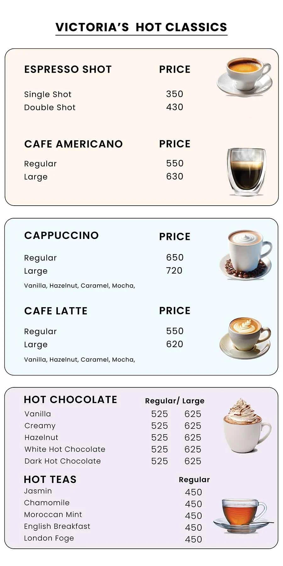 A diverse selection of signature lattes, cold brews, and exotic coffees, providing ample choices to satisfy every palate and meet individual preferences.